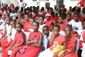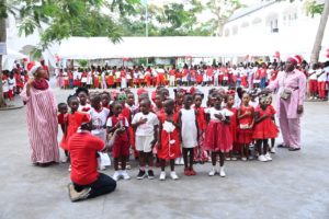 NOËL AU GROUPE SCOLAIRE D’EXCELLENCE CHILDREN OF AFRICA D’ABOBO : LA PREMIÈRE DAME, MADAME DOMINIQUE OUATTARA OFFRE PRÈS DE 1 000 CADEAUX AUX ÉLÈVES