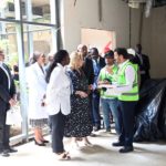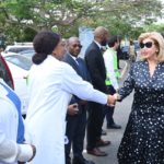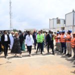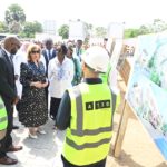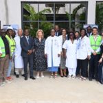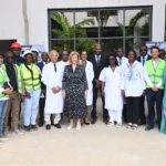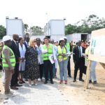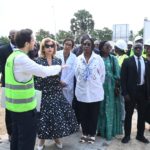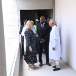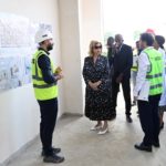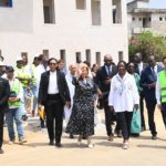 Au cours de la visite, Madame Dominique Ouattara était accompagnée de Madame Nadine Sangaré, directrice de la Fondation Children Of Africa, de M. Hachim Diop, Directeur Général de l’HME, de l’équipe dirigeante de l’hôpital ainsi que de M. Hussein Bourgi, Directeur d’UNISERV, l’entreprise chargée des travaux. Ils ont parcouru les différents espaces en construction, dont le projet paysager, le hall d’accueil, les salles de consultation, le parking et plusieurs autres services en cours d’aménagement.
